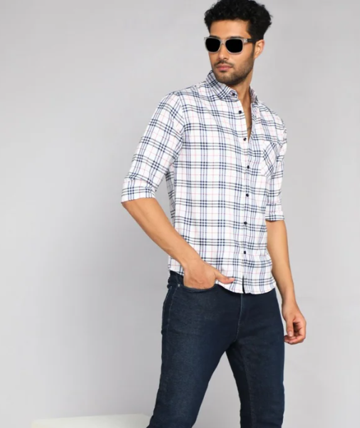 Be the first to review “Men Poly Cotton White Check Shirt, Full Sleeves”