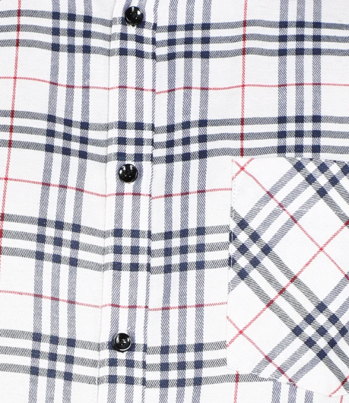 Men Poly Cotton White Check Shirt, Full Sleeves